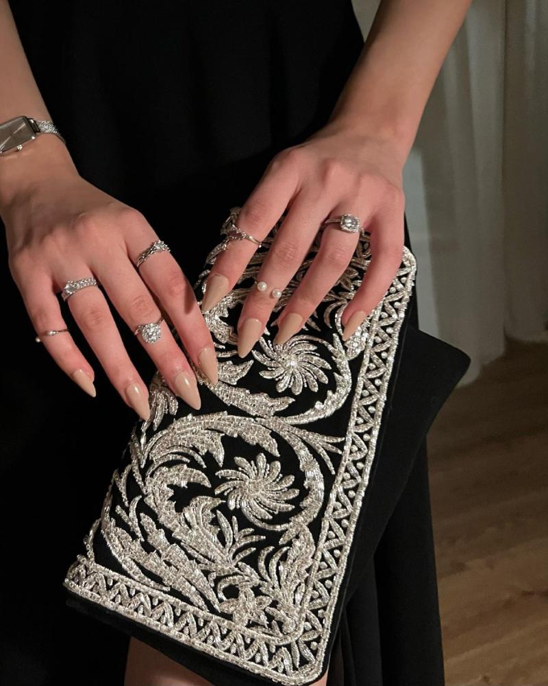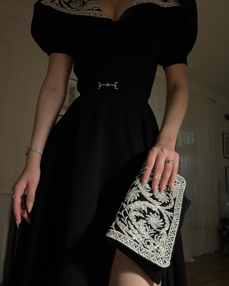 خامه الفستان / كريب استرتش كلوش +تطريز كمبيوتر +فصوص تطريز