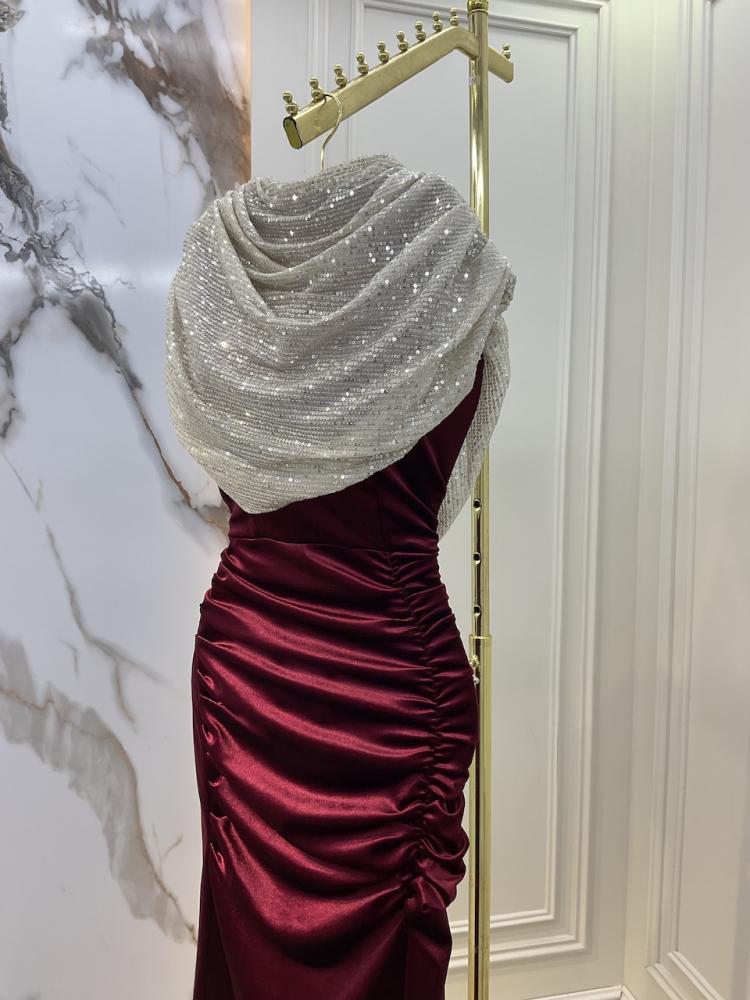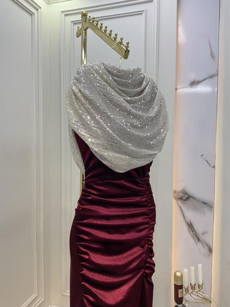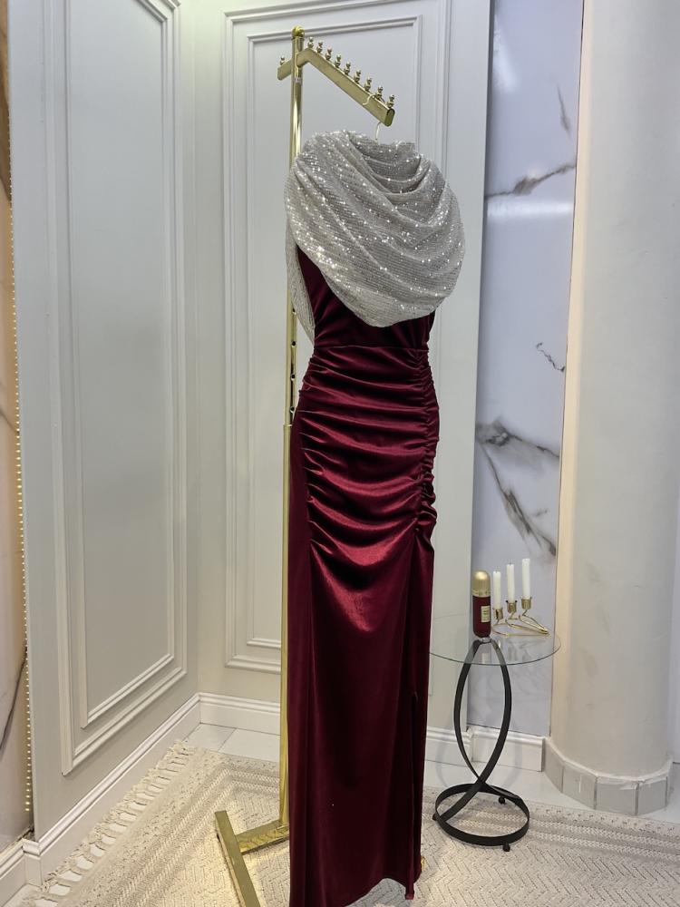 فستن سهره طويل وانيق عنابي خامة مخمل على ترتر
